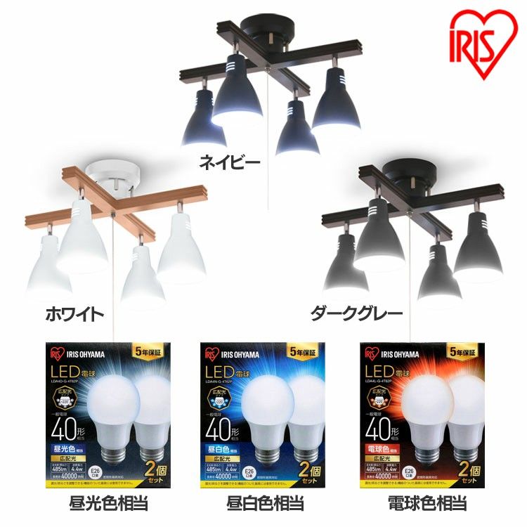 4灯シーリングライト クロスタイプ+【4球セット】LED電球 E26 広配光 40形相当 LDA4D-G-4T62P ネイビーホワイ トダークグレー 昼光色昼白色電球色送料無料 シーリング スポットライト ヴィンテージ アンティーク 天井照明 LED電球 アイリスオーヤマ