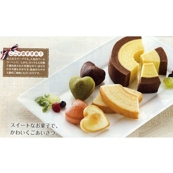 【内祝い お菓子】ギフト対応 ●現品ハートケーキ約20g(プレーン・チョコ各2個・ストロベリー・抹茶各1個)・バームクーヘン約220g(チョコバナナ)1個・賞味期間/製造日より常温約30日・[日本製]・【卵・乳・小麦・大豆・バナナ】●箱サイズ約32.5×15.5×4.2cm・525g ●10個以上よりご注文を承ります。